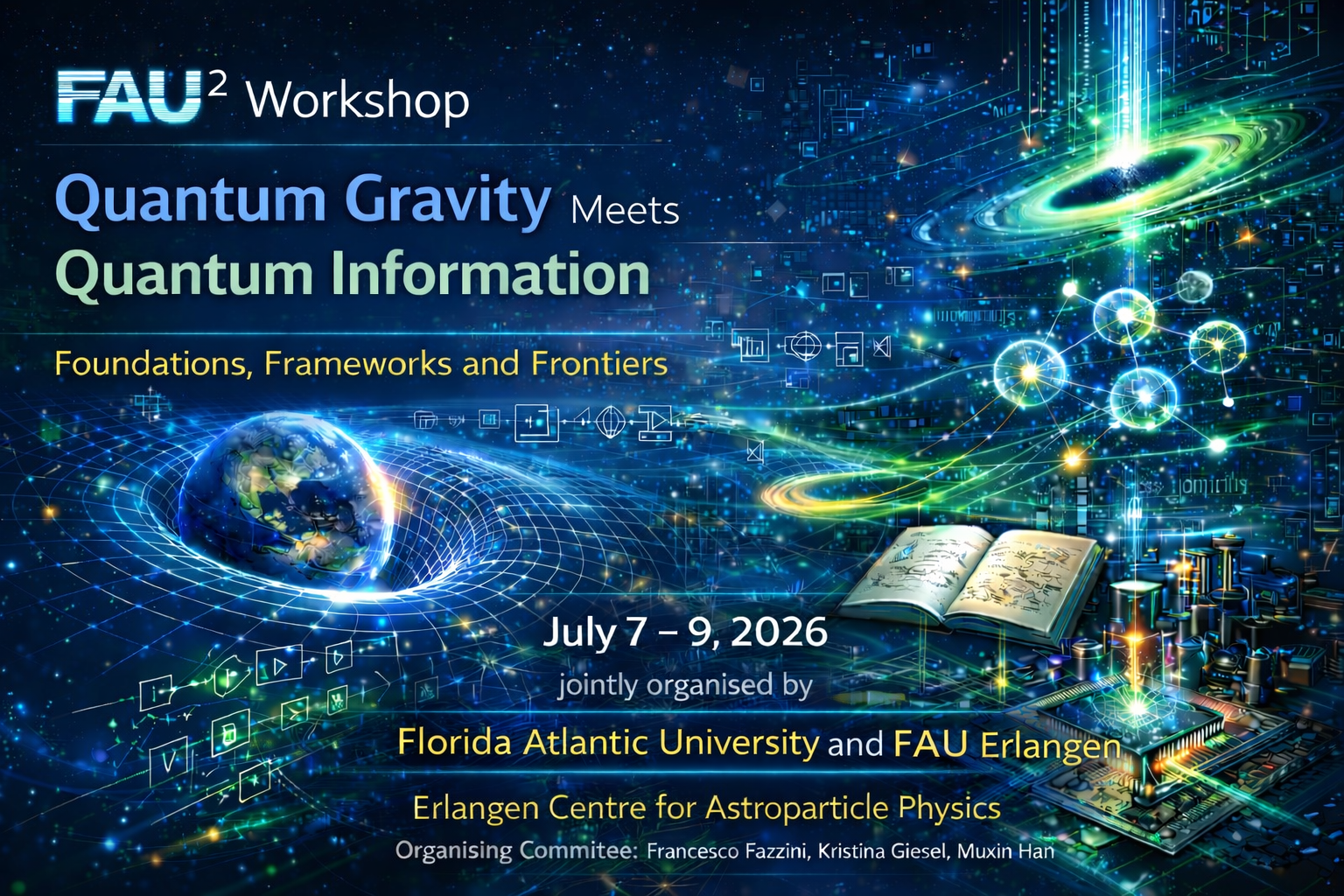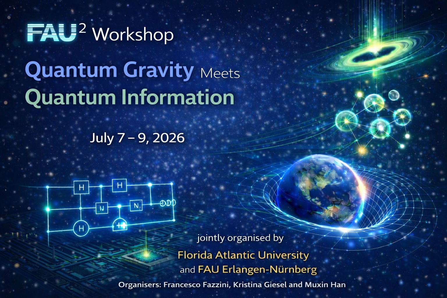 The workshop FAU²: Quantum Gravity Meets Quantum Information – Foundations, Frameworks and Frontiers” focuses on the rapidly developing interface between quantum gravity, quantum foundations, and quantum information theory. Recent advances have shown that concepts such as quantum reference frames, entanglement and geometry, quantum thermodynamics in gravitational settings, measurement and observers in diffeomorphism-invariant systems, black hole information, and open quantum systems offer new insights into the structure of spacetime and the formulation of gravitational dynamics. At the same time, gravitational physics poses profound foundational challenges to quantum theory, particularly regarding time, subsystems, and the role of information.